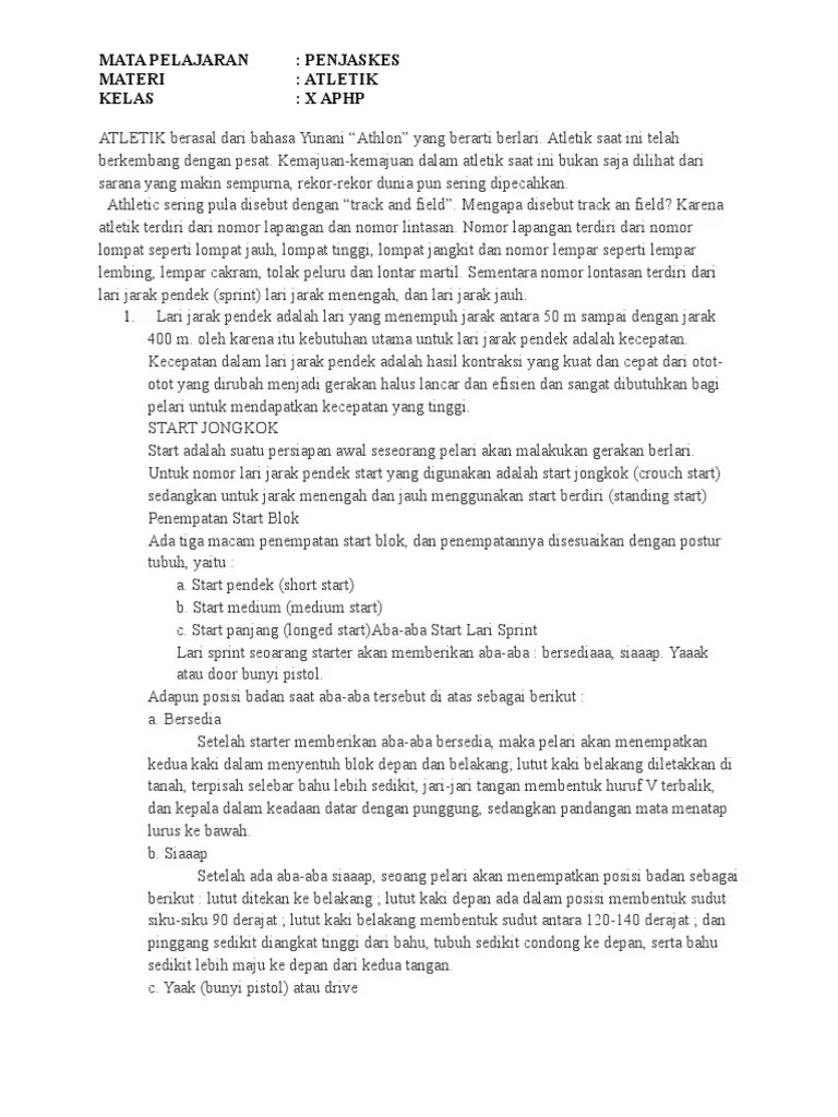 Materi Atletik Kelas 10 - Lkpd Pjok Kelas Vii Materi Lari Jarak Pendek Worksheet / Jun 30 2014 materi penjasorkes kelas x smstr 1 dan 2 1.